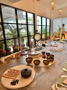Jen’s journey with holistic wellbeing began over 20 years ago when she was a professional dancer living in London. She has trained across the world, with some of the most senior teachers in yoga, sound therapy, mindfulness & meditation. She has been hosting Sound bath’s in Thailand since 2017 & has grown a collection of more than 10 gongs & a vast array of other instruments that she is happy to share with students in her intimate sound trainings.