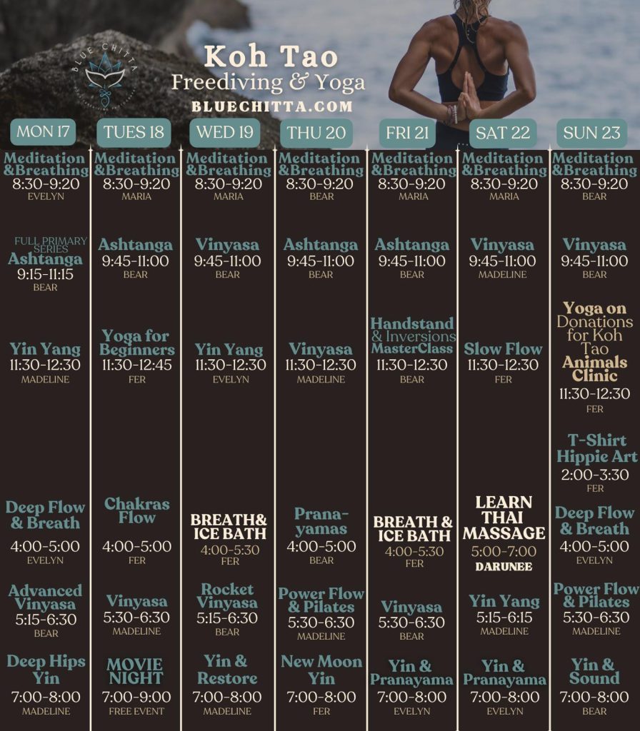 Welcome to Blue Chitta Yoga and Freediving Studio Koh Tao, a sanctuary where breath, movement, and mindfulness unite our beautiful community!